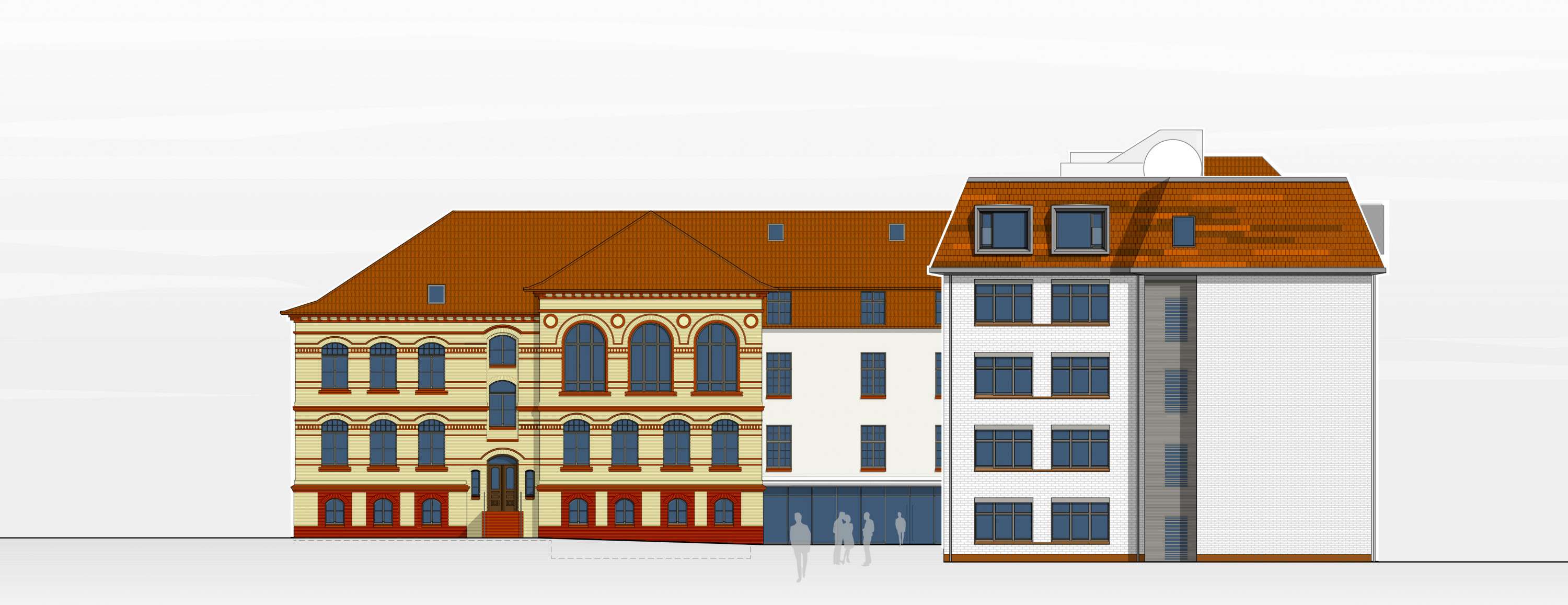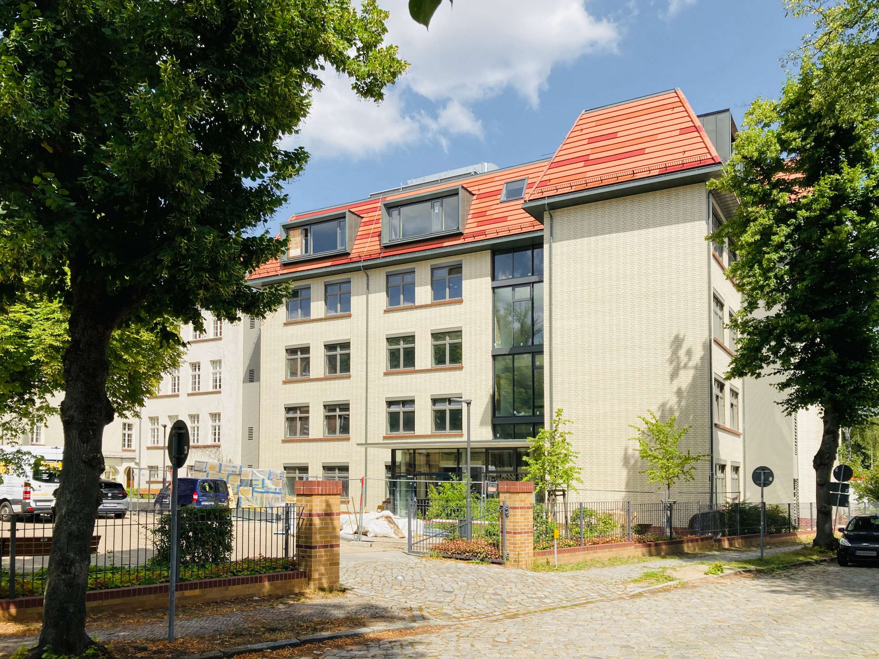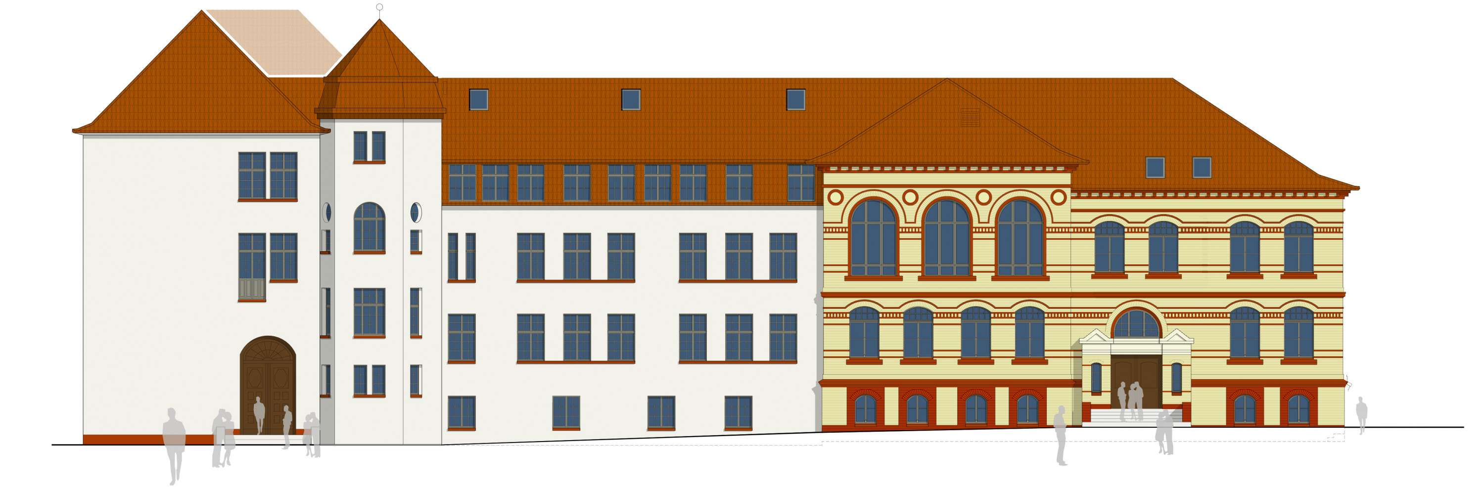 Die Generalsanierung und Erweiterung des Friedrich-Wilhelm-Gymnasiums in Königs Wusterhausen schafft einen zukunftsfähigen Schulstandort, der die historische Bausubstanz mit moderner Lernarchitektur verbindet. Die Baumaßnahme wird in mehreren Bauabschnitten realisiert, um den laufenden Schulbetrieb während der Bauzeit sicherzustellen. Ziel des Entwurfs ist es, das historisch gewachsene Ensemble architektonisch zu harmonisieren, den Schulcampus funktional und gestalterisch zu stärken und ihn an die pädagogischen Anforderungen der Gegenwart anzupassen. Dabei werden Denkmalschutz, Raumqualität, Brandschutz und Nachhaltigkeit gleichrangig berücksichtigt. Das Gebäudeensemble des Gymnasiums liegt nördlich des Stadtkerns von Königs Wusterhausen und ist über Jahrzehnte gewachsen. Es umfasst mehrere Baukörper unterschiedlicher Bauzeiten, von denen die ältesten Teile unter Denkmalschutz stehen.